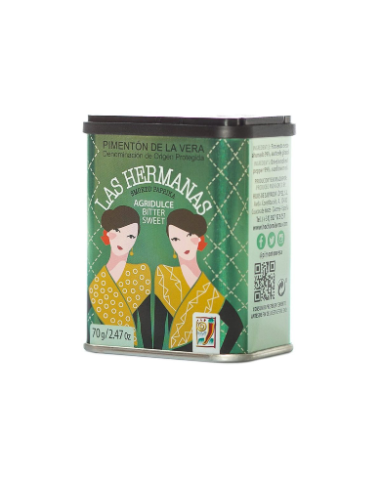 Pimentón de La Vera dulce, presentado en lata de 70 gr., a destacar su auténtico y suave sabor.