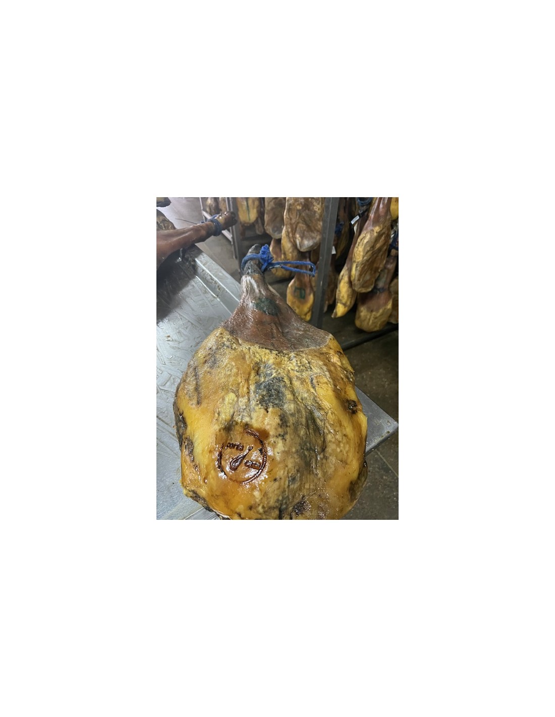 Épaule 100 % Ibérique de Bellota, avec étiquette noire, certifiant sa catégorie en tant que produit haut de gamme 100 % ibérique. Son poids est entre 5 et 5,5 kg, un poids idéal pour la maison avec un rendement élevé.