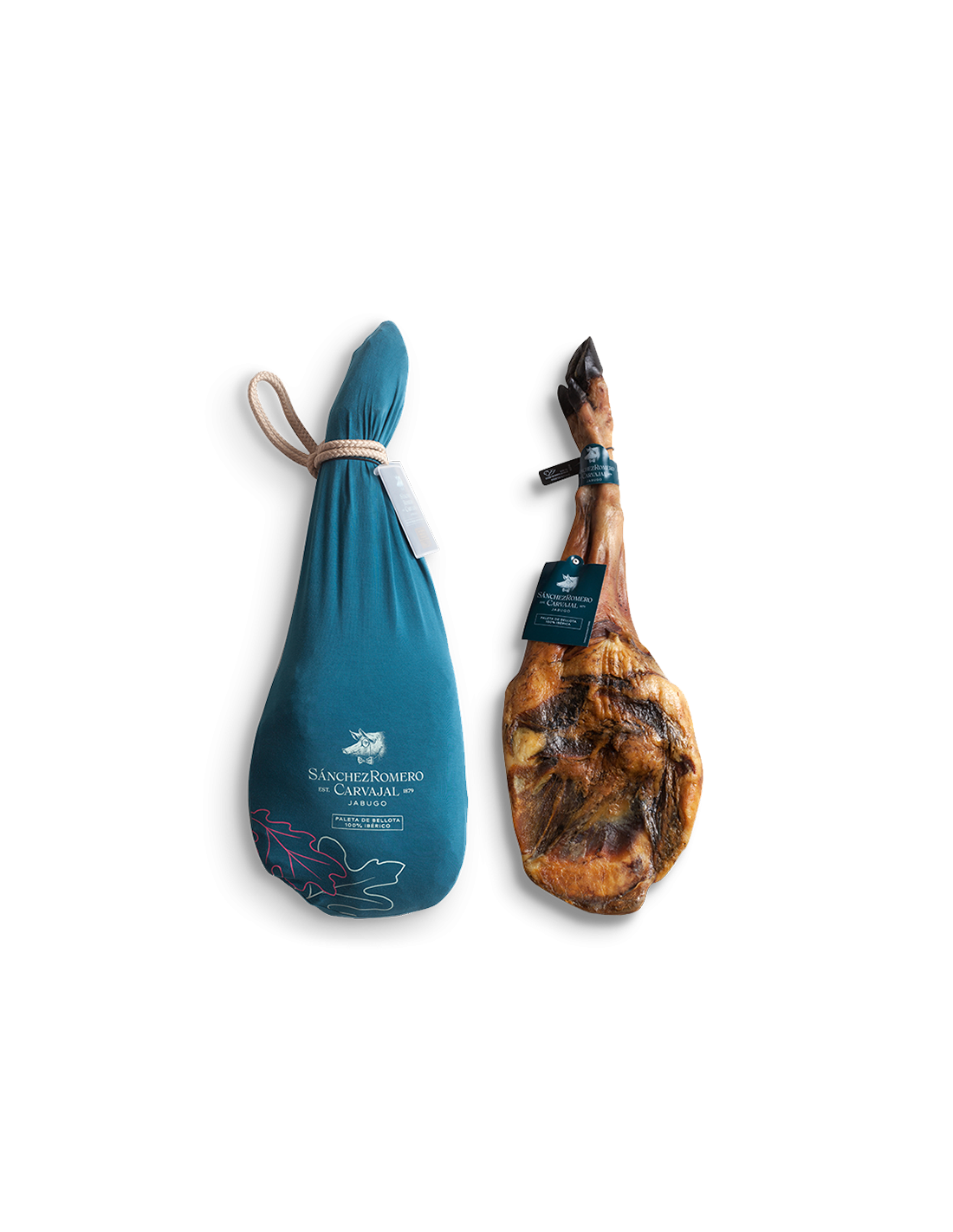 Paleta ibérique pure de bellota Sánchez Romero Carvajal Jabugo. Paleta de porc 100% ibérique de Sánchez Romero Carvajal de Jabugo, élevé en liberté dans les pâturages et nourri aux glands. Offre spéciale disponible dans notre boutique en ligne.