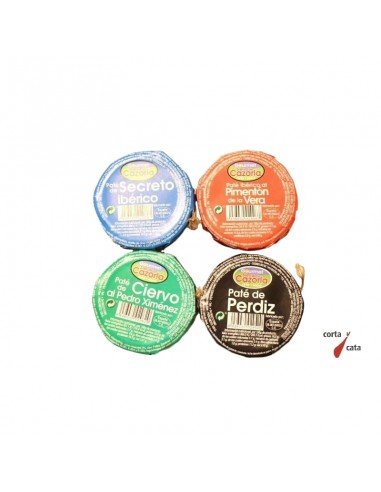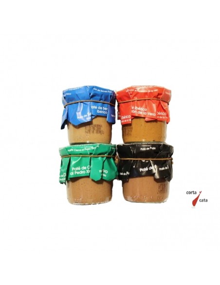 Gourmet Pâté in 4 glass jars with very authentic flavors. Ham, Spicy, Iberian Secret, and Pepper.