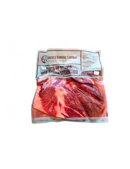 Sanchez Romero Carvajal 100% Iberian Acorn-fed Shoulder Ham. Presented vacuum-packed with an approximate weight of 1.7 to 2 kg.