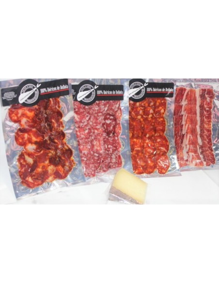 Iberian Cebo Shoulder Ham, 1/2 Iberian Bellota Chorizo, 1/2 Iberian Bellota Salchichón.
